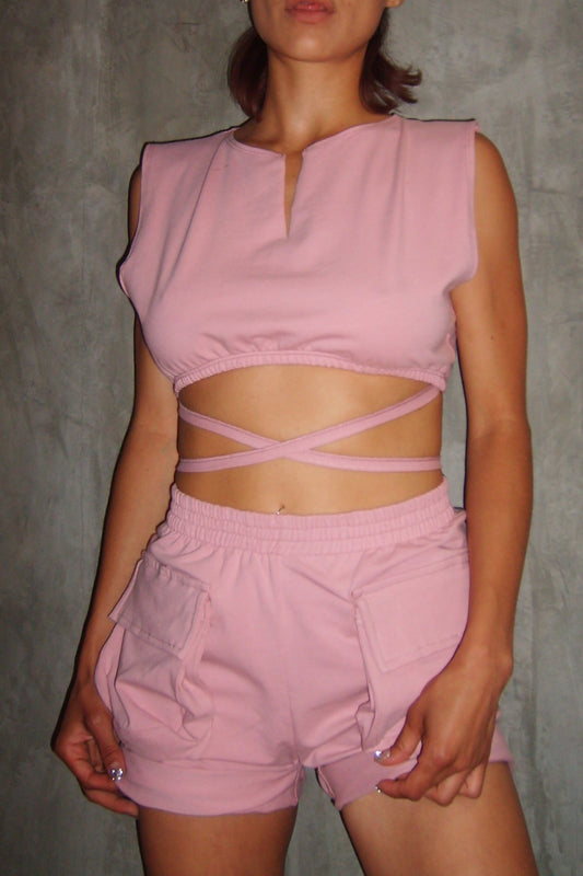 Our double layered tube top paired with cotton lycra mid waist biker shorts.